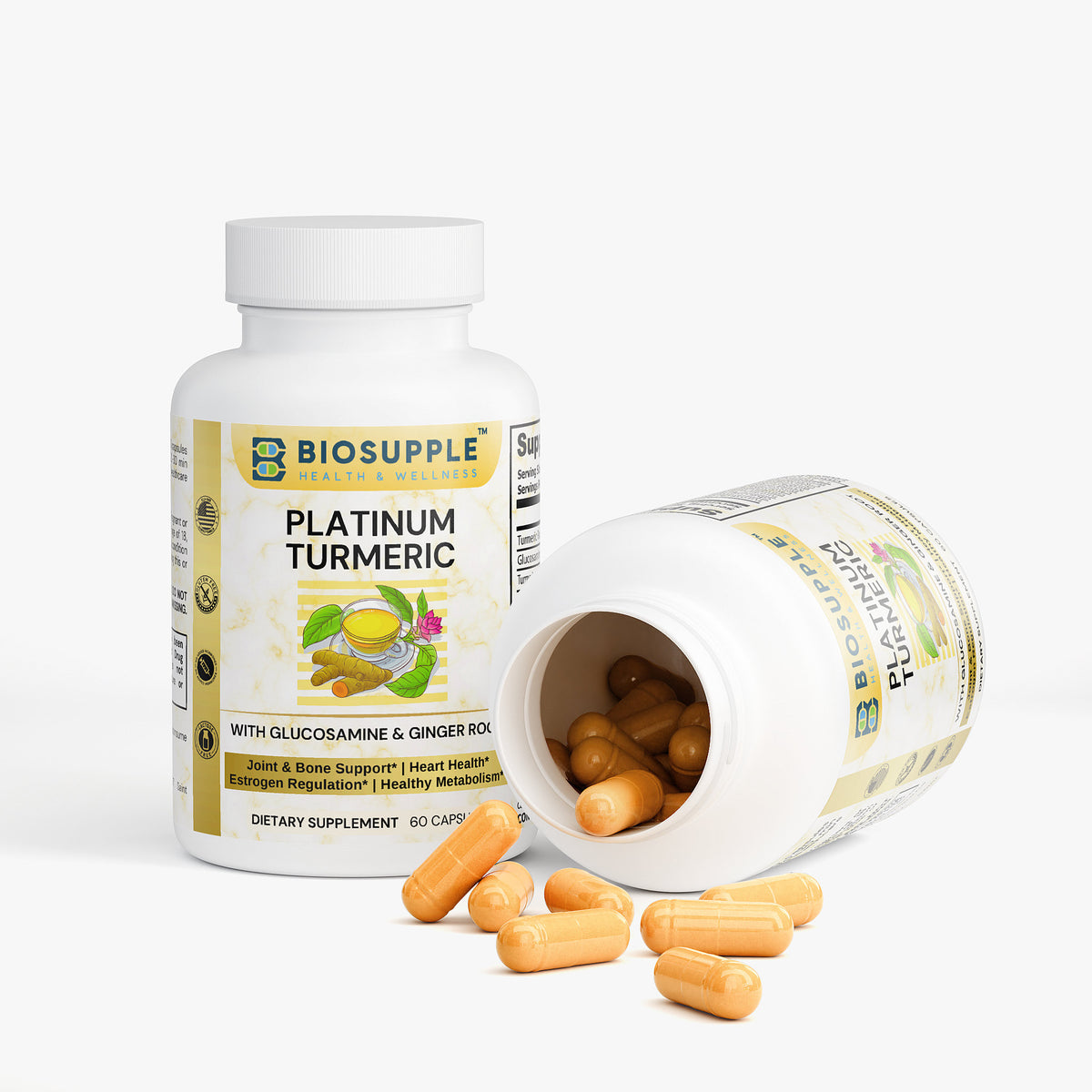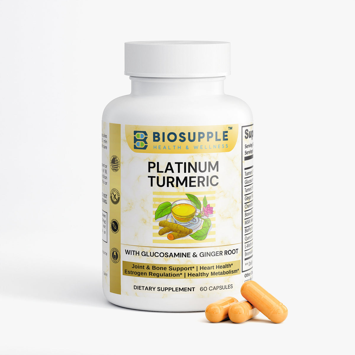 Our Platinum Turmeric blend contains various forms of turmeric, glucosamine, Boswellia extract (frankincense), piperine, and several other highly beneficial natural extracts to keep you at your best. We offer Platinum Turmeric capsules for Inflammation made in USA.